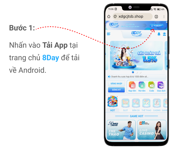 | 1 | ??u tiên h?y truy c?p vào web chính th?c c?a nhà cái r?i tìm m?c “ ??ng nh?p 8Day” . |